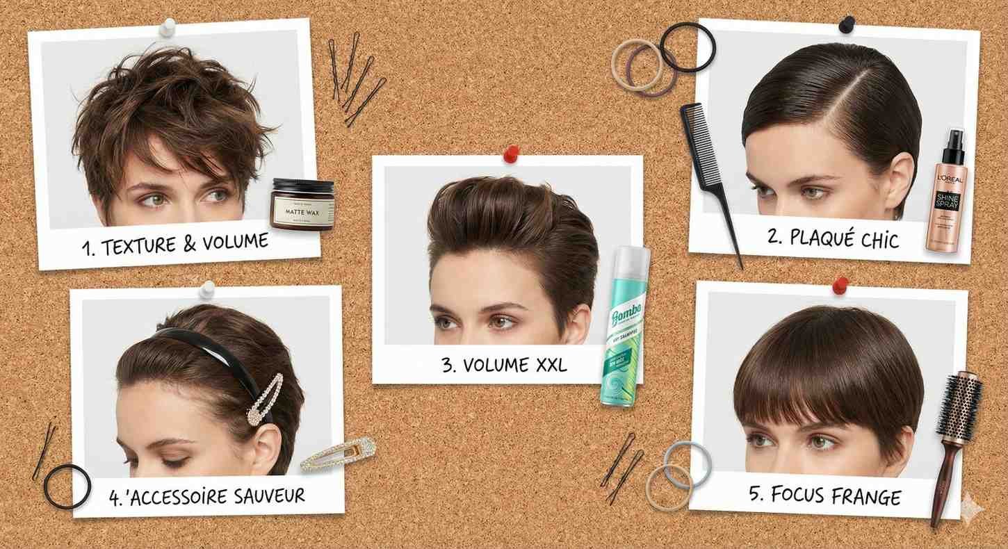 Retenez l’essentiel : une coupe pixie bien taillée simplifie le coiffage quotidien. En utilisant les bons produits comme la mousse, la cire ou le spray texturisant, vous obtiendrez du volume et de la tenue sans alourdir vos cheveux. De simples gestes rapides — séchage ciblé, coiffage au doigt et finition légère — suffisent pour afficher un look soigné en moins de 5 minutes.